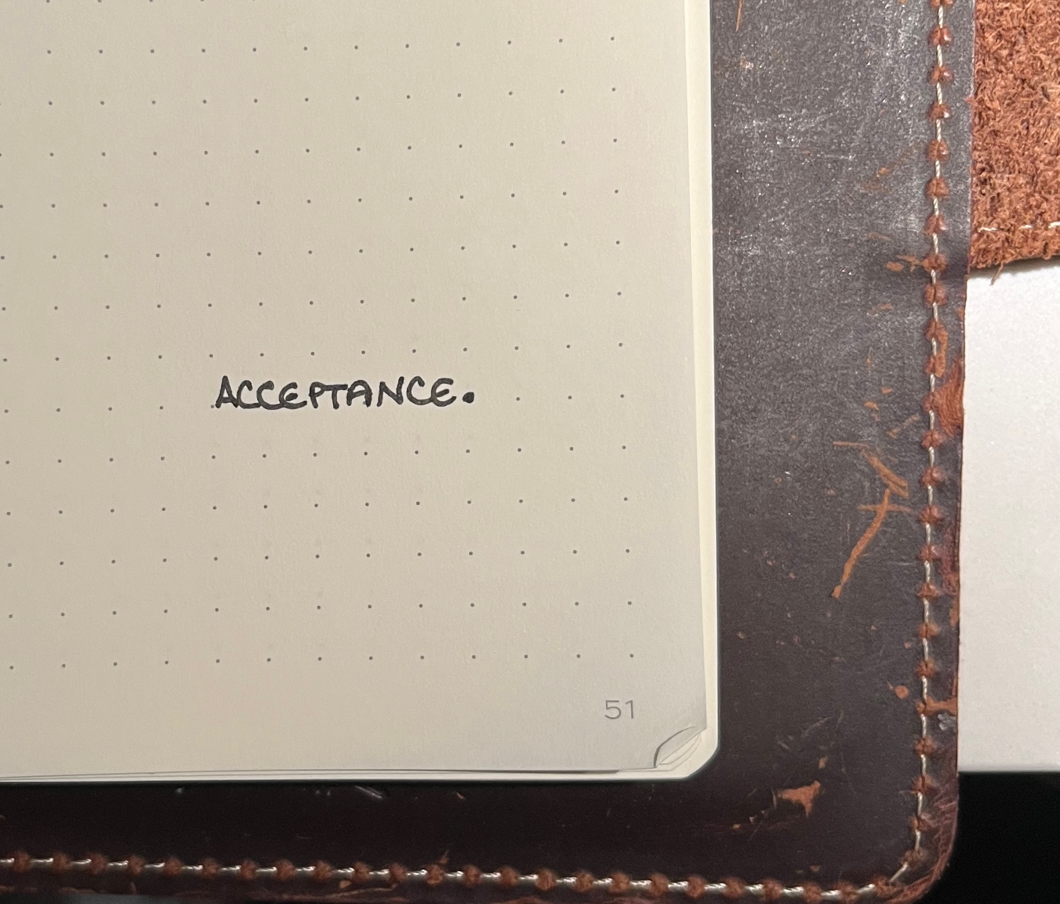 Acceptance is an action you practice (sometimes daily), after you have done the work to set boundaries and implement change where it is needed.